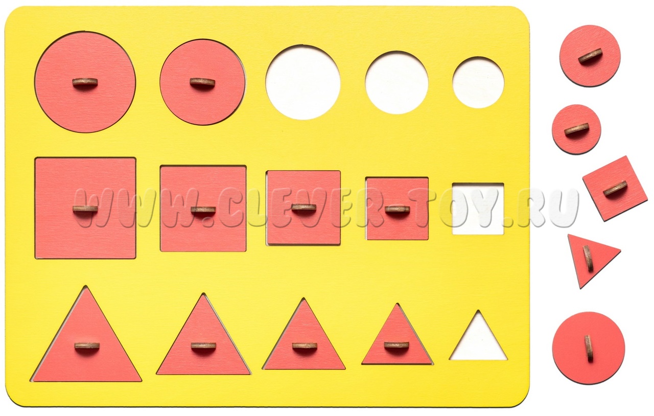Занимаясь с рамкой-вкладышем "Больше-меньше", ребёнок научится различать размеры предметов, познакомится с геометрическими формами и усовершенствует мелкую моторику пальцев.