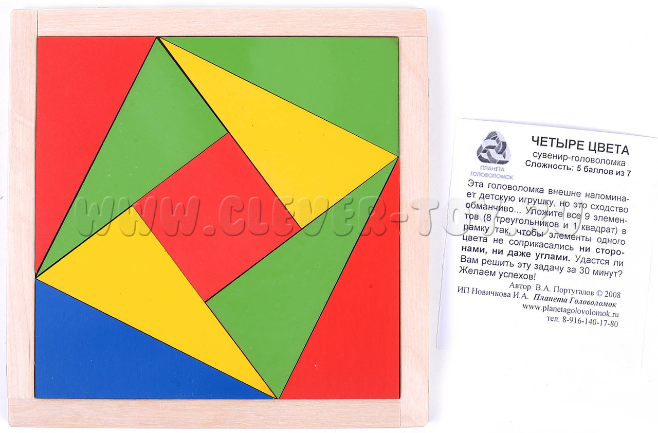 Головоломка "4 цвета" - увлекательная игра, которая подойдет как для взрослых, так и для детей от 4 лет. Она представляет собой набор фрагментов разного цвета и платформу для заполнения.