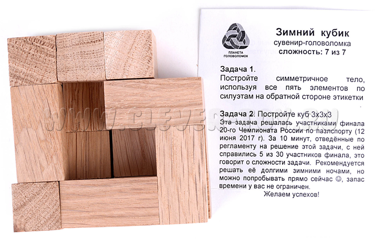 Головоломка “Зимний кубик” – сложная задача, которая развивает логику и пространственное мышление. Даже взрослым будет сложно разобраться с данной задачкой. Однако радостные эмоции вам обеспечены после успешного прохождения испытания для вашего интеллекта.