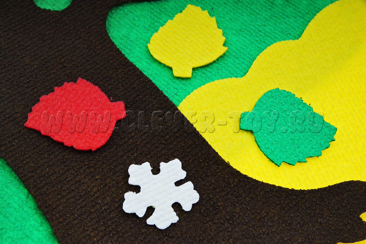 - снежинки 10 шт., листочки зелёные 10 шт., листочки жёлтые 10 шт., цветочки 10 шт.;