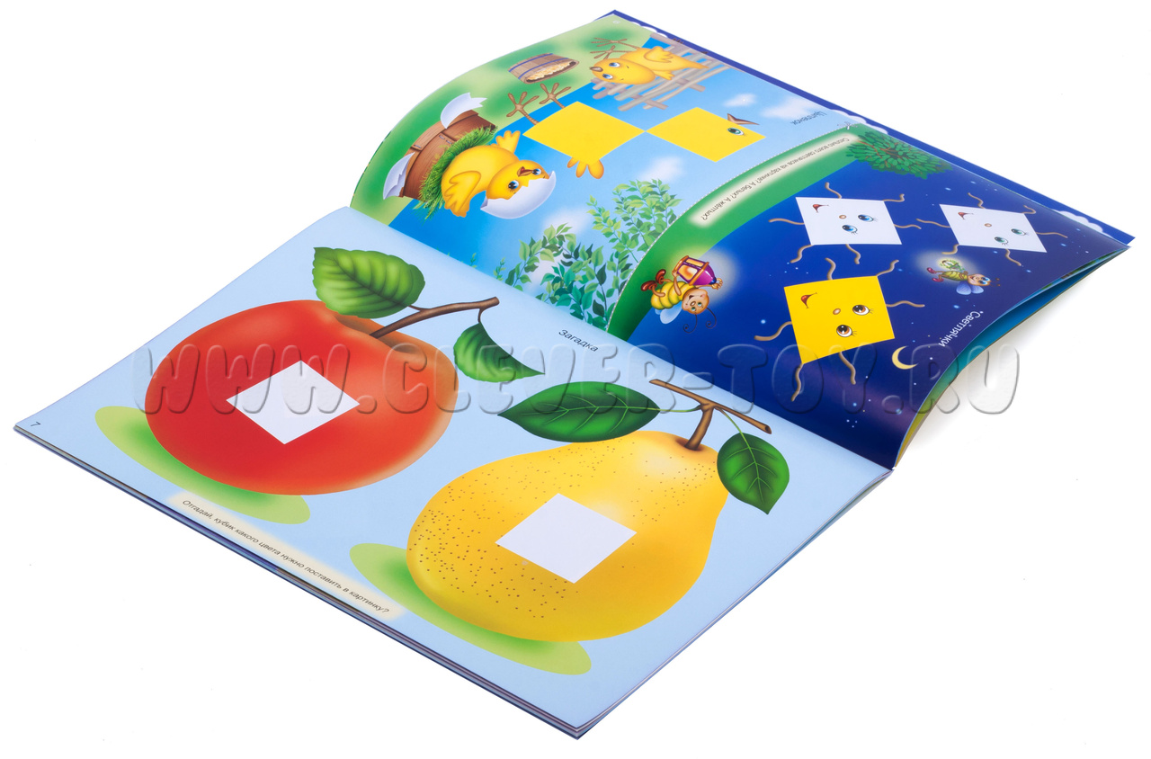 Каждую схему в альбоме сопровождает забавный рисунок, тем самым наши кубики "оживают", превращаясь в звезды и солнце, в собачек и кошечек, в рыбок и паучков, что делает игру еще увлекательней!
