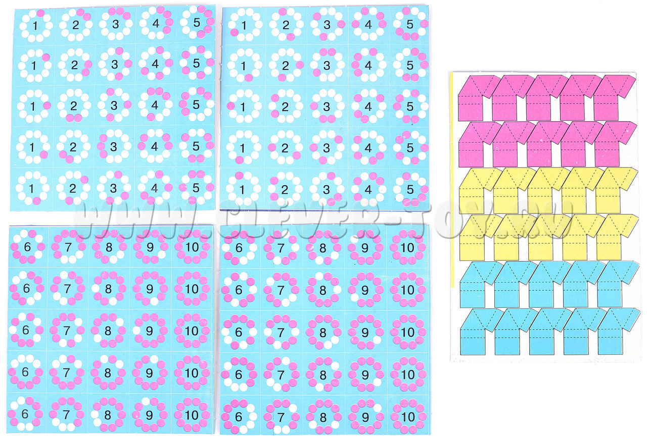 2. Карточки движения – получаются в результате разрезания 4 блоков с шариками и цифрами по белым линиям. Всего их 100.