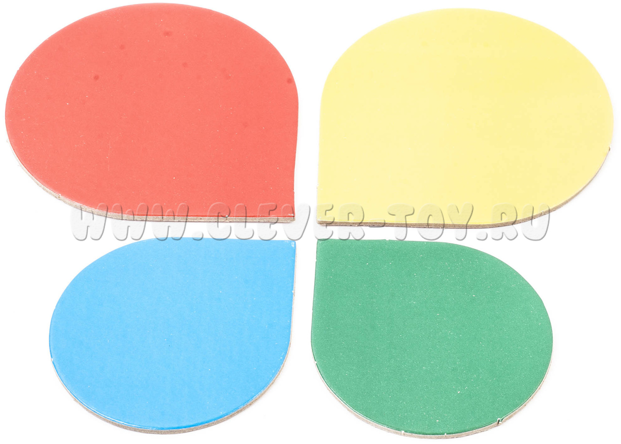 По выгодной стоимости вы получаете: 3 набора по 10 разноцветных лепестков на магнитах, радужные цвета + белый, серый и чёрный, отличающиеся по величине (большие, маленькие, средние). У каждого лепестка есть «носик», который определяет расположение детали в пространстве (повёрнута вправо, влево, вниз, вверх). Игровые элементы выполнены из картона, с обратной стороны снабжены магнитной лентой.