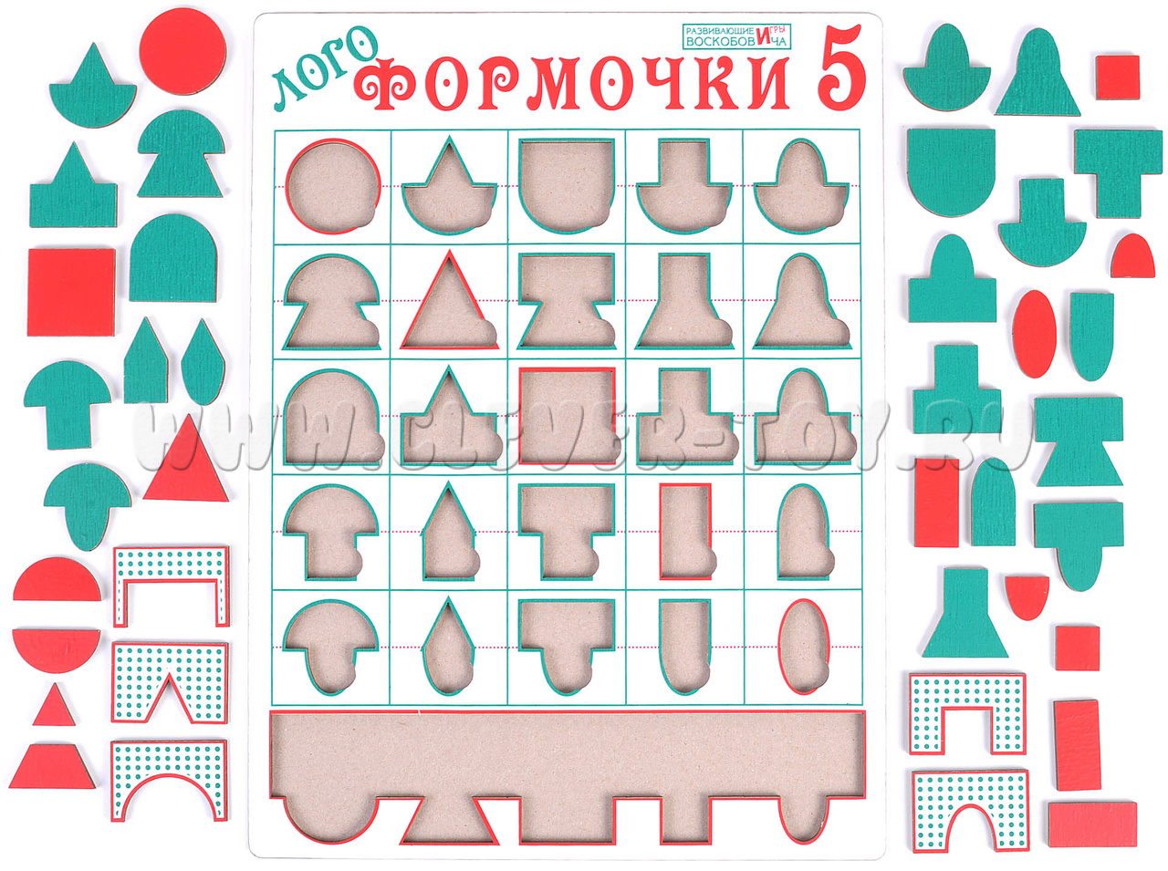 - поле игры с сеткой 5*5 для лучшего восприятия фигур-вкладышей и их частей;