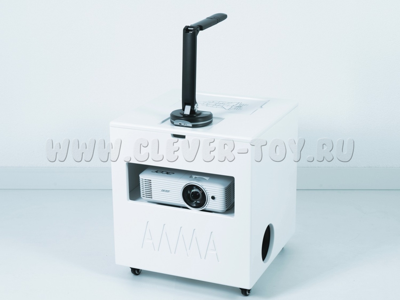 Благодаря подвижной платформе и компактным размерам "Творческую студию" легко перемещать между помещениями, а яркий проектор позволяет выводить изображение на различные поверхности.