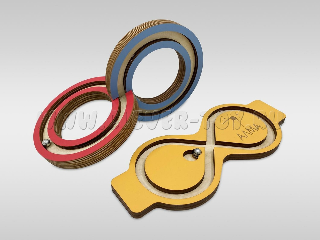 Изделия изготовлены из высококачественной берёзовой фанеры и покрыты полиуретановыми красками, устойчивыми к истиранию и выцветанию. Металлический шарик закреплён на магните.