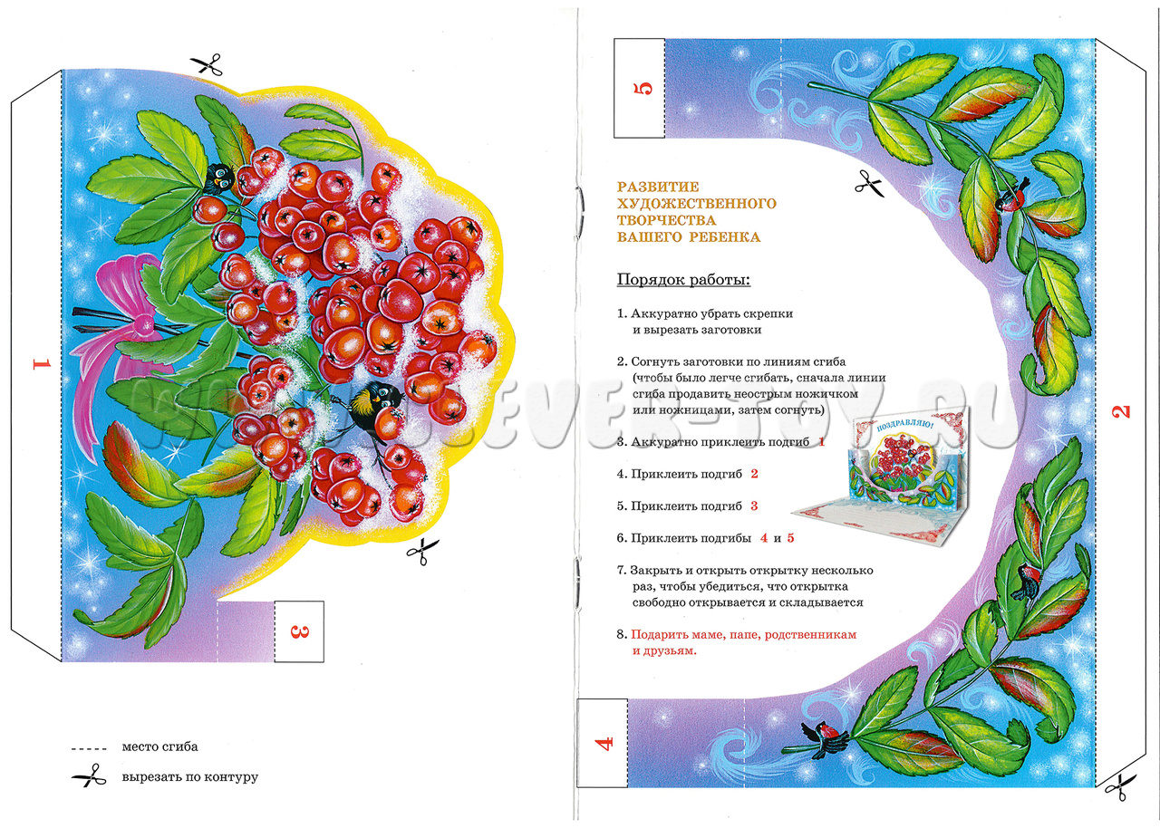 3D объёмная открытка-книжка для детского творчества "Рябинушка".