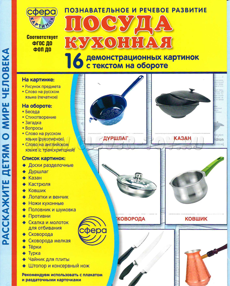 Яркие и красочные карточки помогут вашему ребёнку узнать больше о разных видах посуды и их использовании. Демонстрационные карточки помогут развить кругозор вашего малыша и расширить его словарный запас.