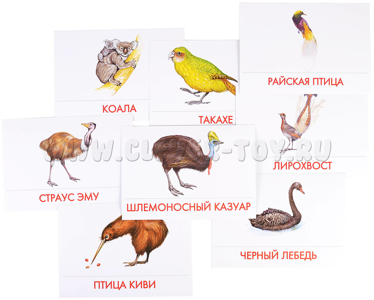 - лирохвост, страус эму, шлемоносный казуар, чёрный лебедь;