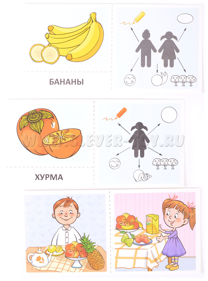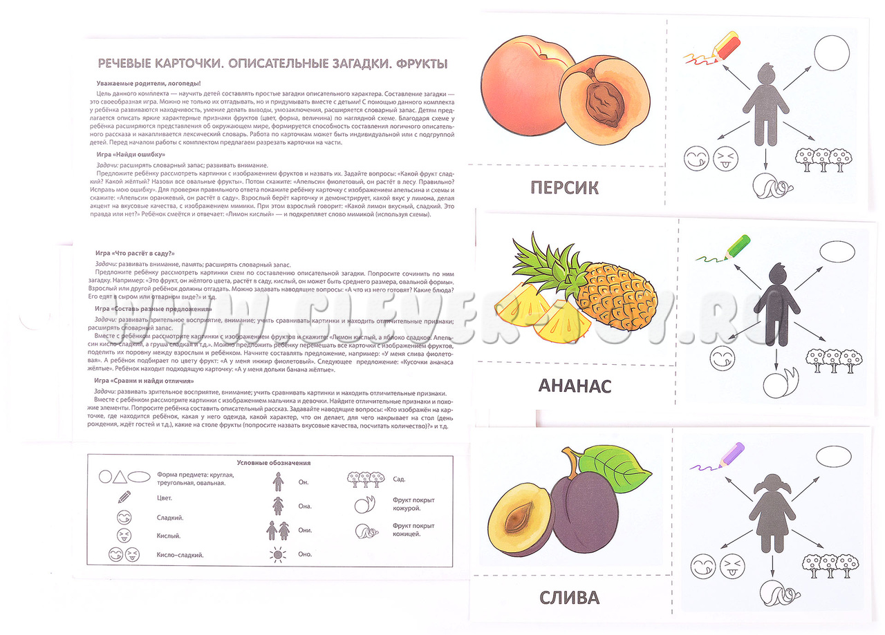 Набор карточек с рисунками. Речевые карточки. Описательные загадки. Фрукты.