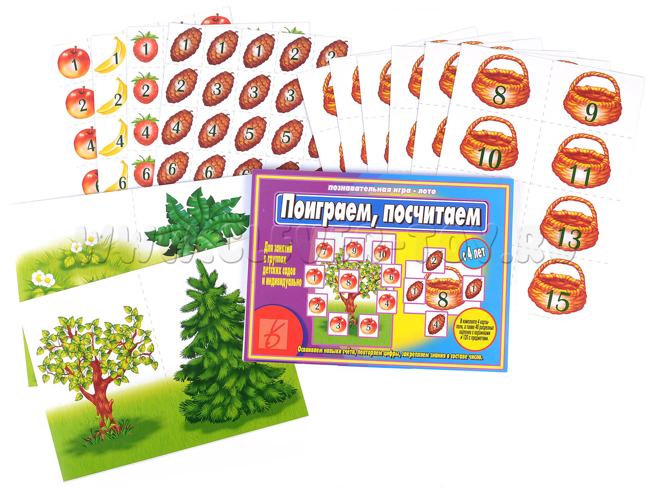 Познавательная игра-лото "Поиграем, поситаем" предназначена для детей с 4-х лет. Данная игра поможет детям освоить навыки счета, повторить цифры, закрепить знания о составе числа.