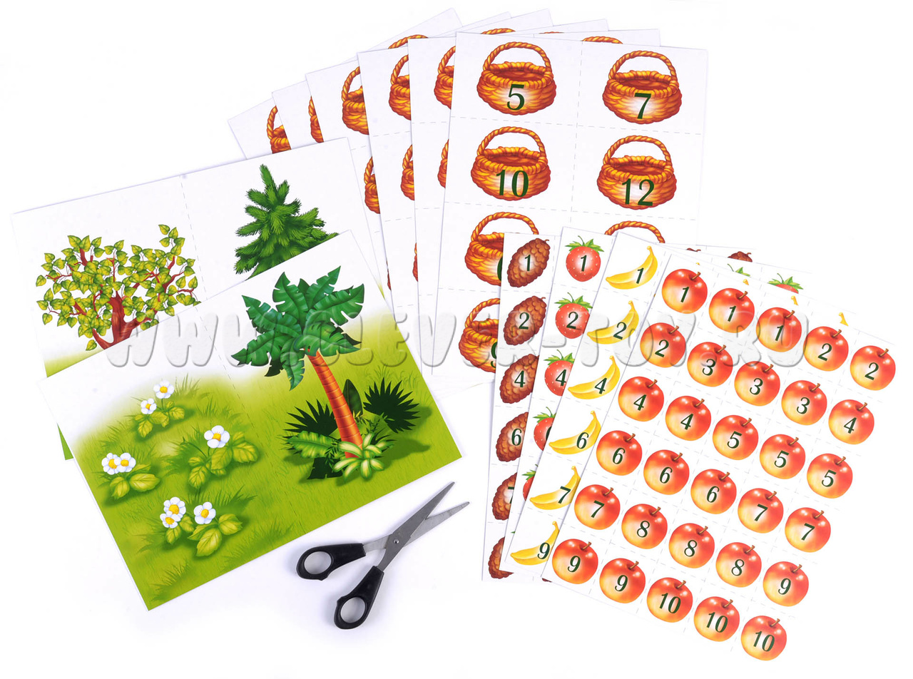 - Предложите собрать и разложить на карточке с яблоней яблоки так, чтобы числа в сумме соответсвовали определенному числу, например 30, 40, 50, и т.д.