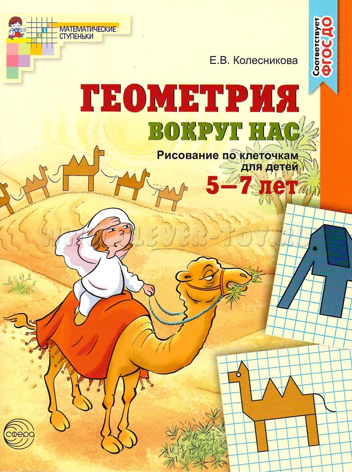 Геометрия вокруг нас. ЦВЕТНАЯ. Рисование по клеточкам для детей 5-7 лет. ФГОС ДО