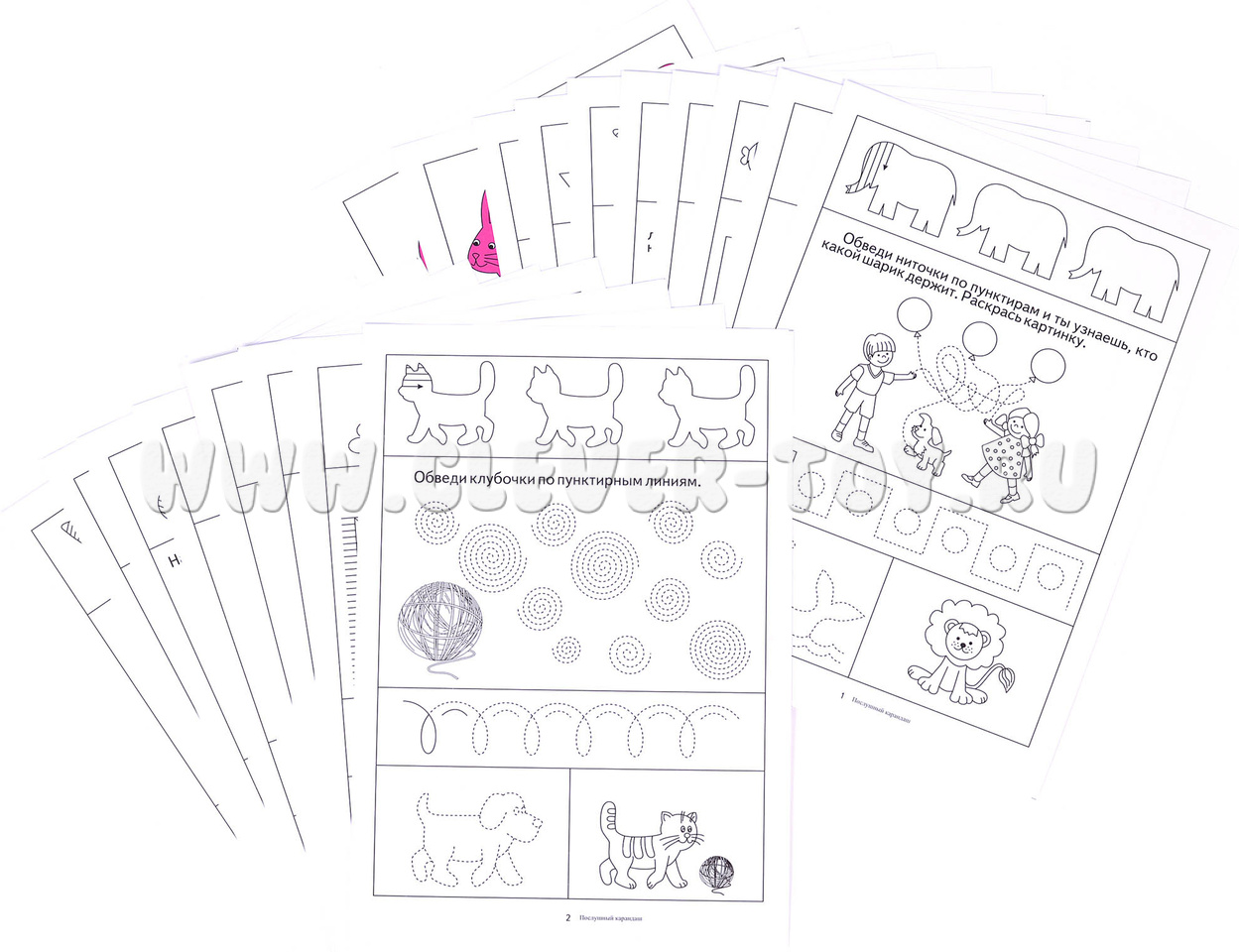 Внутри вы найдете такие задания как: штриховка по образцу, продолжи узор, обведи по точкам, раскрась картинку, нарисуй точно такой же рисунок, дорисуй вторую половину.