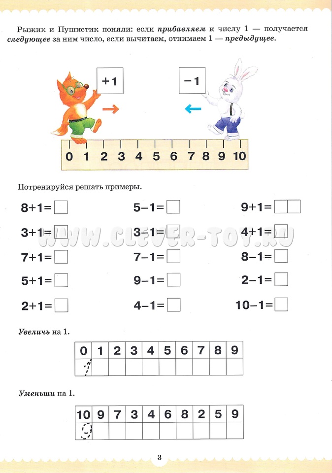 Вместе со сказочными персонажами Рыжиком и Пушистиком малыши, познакомятся с людьми разных профессий, закрепят знания цифр, вспомнят их последовательность в числовом ряду, познакомятся с составом чисел из двух меньших, узнают про сложение и вычитание, про математические знаки, научатся решать простые задачки, писать цифры.