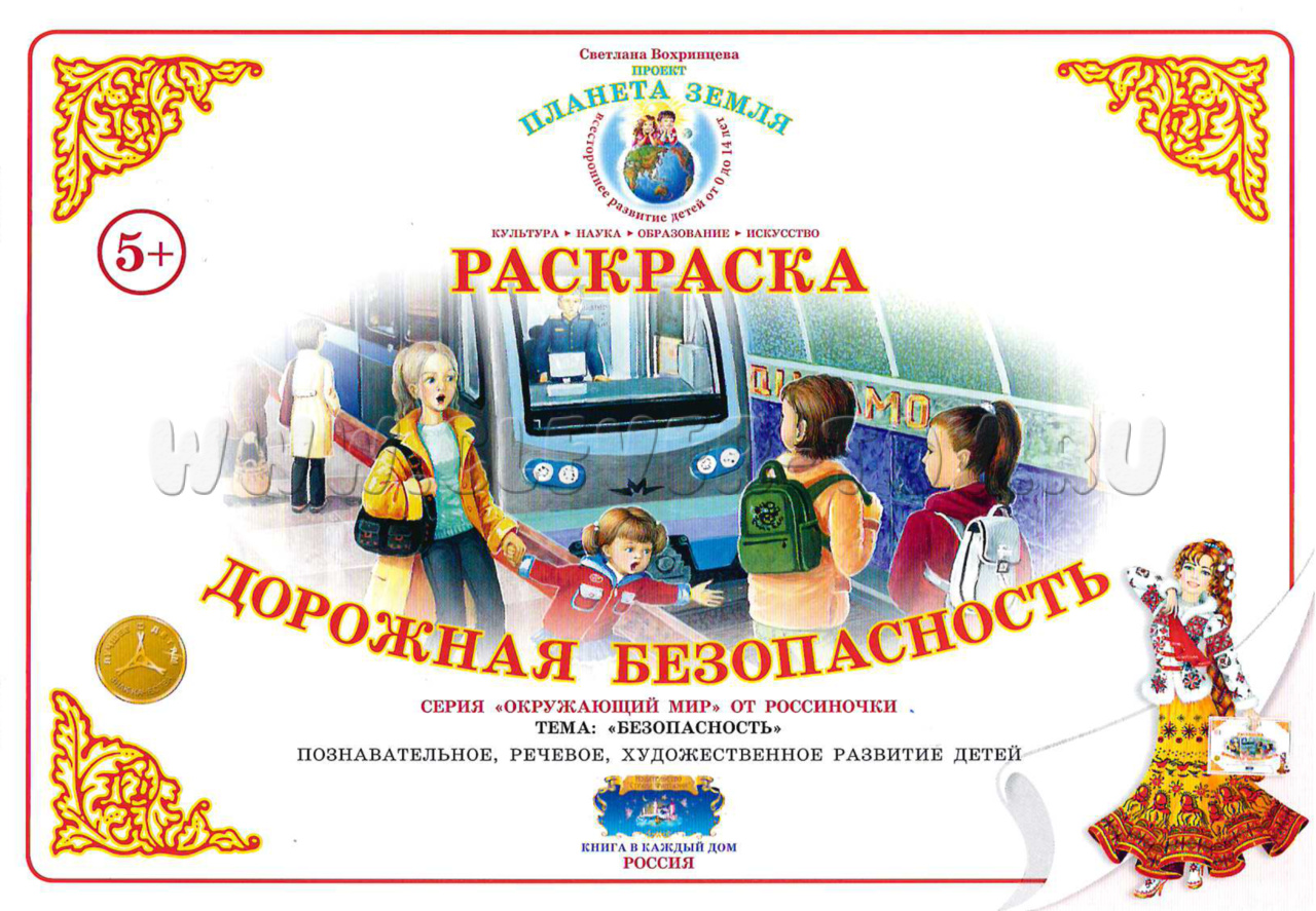 Раскраска "Дорожная безопасность" предназначена для детей от 5 лет. Она содержит яркие иллюстрации на тему безопасности на дороге и предлагает 8 листов с контурами для раскрашивания.
