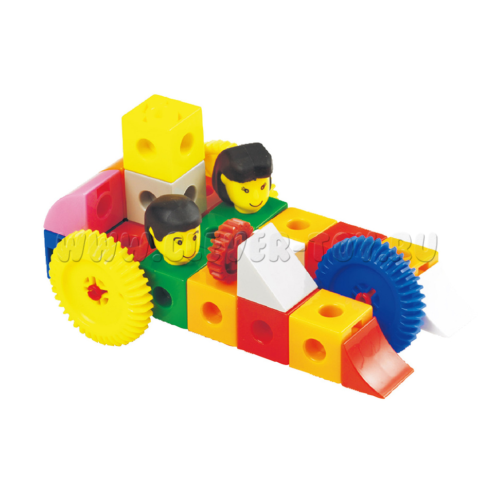 Кубики Gigo имеют уникальную конструкцию. Каждый кубик имеет размер 2*2 см, один выступ-штифт и пять отверстий для соединений. Количество комбинаций соединений кубиков между собой и с другими элементами огромно - это буквально миллионы вариантов. Для прочного соединения детали необходимо повернуть относительно друг друга, как бы вкручивая, а чтобы легко разъединить необходимо повернуть относительно друг друга, немного выкручивая. Благодаря такому соединению модели получаются очень прочными.
