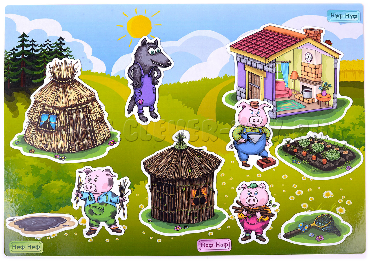 Размер карточек: 15 см х 12 см (изба), 10 см х 6 см (волк).