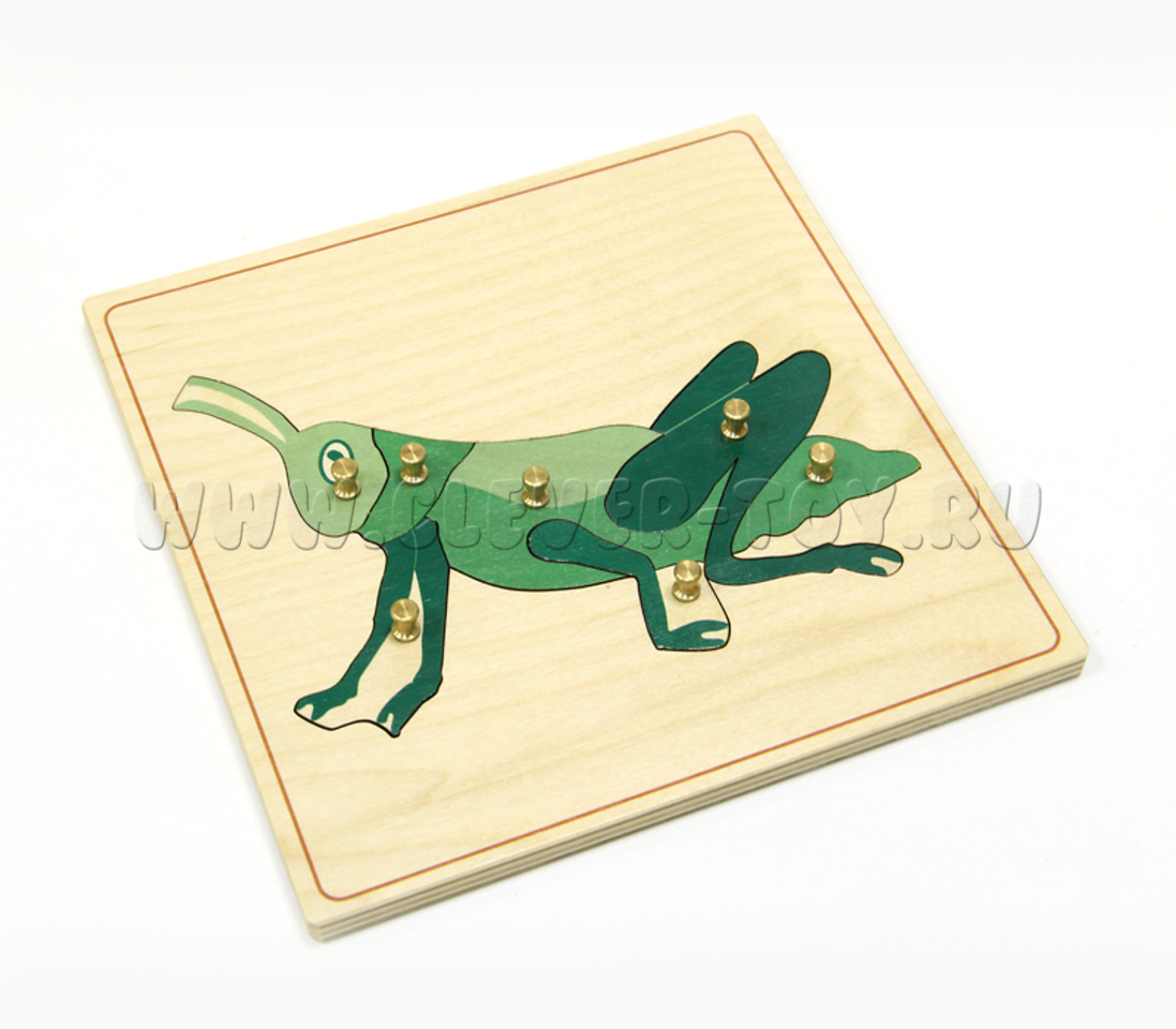 Знакомство со строением кузнечика путем составления целого из частей и проговаривания их названий способствует развитию речи, увеличению словарного запаса и формированию восприятия формы.