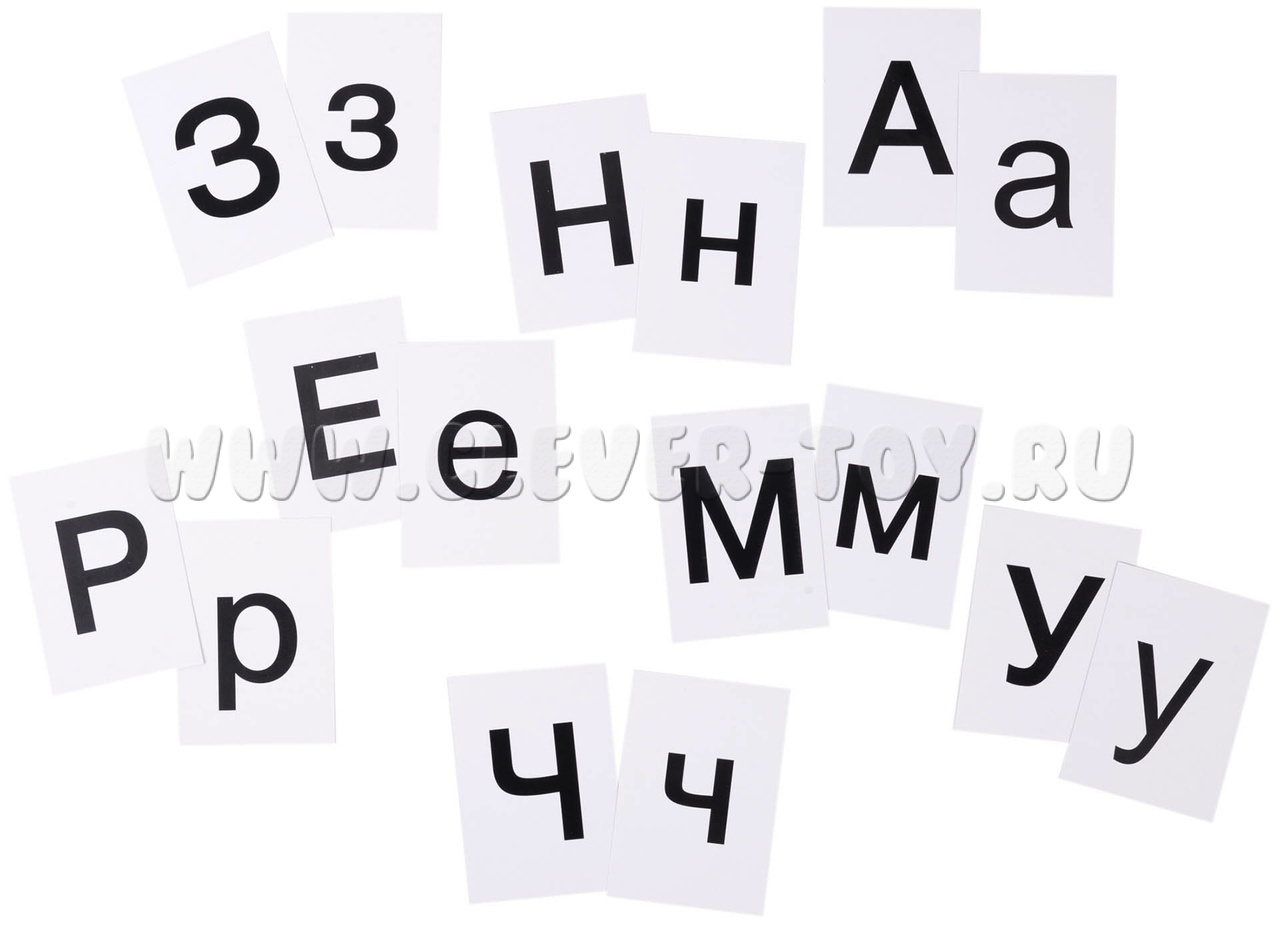 Карточки с буквами (заглавными и строчными), слогами и знаками из картона (7*10 см) общим количеством более 220 шт.