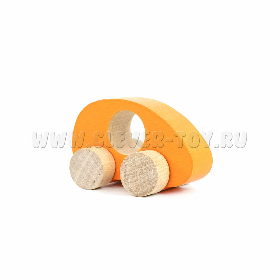 Деревянная машинка-каталка "Томик" оранжевая для самых маленьких ребят, с отверстием для пальчиков.