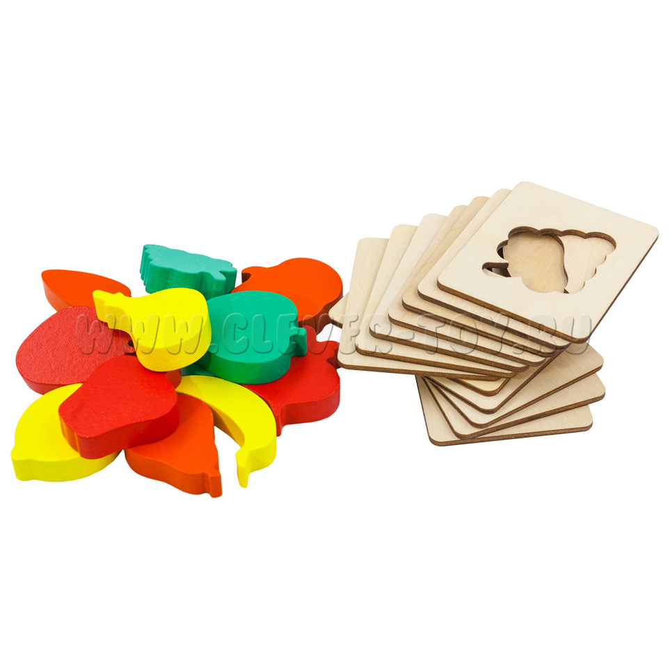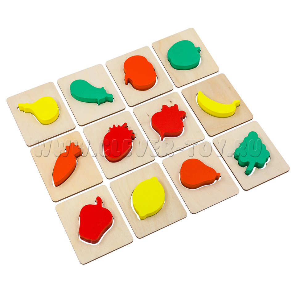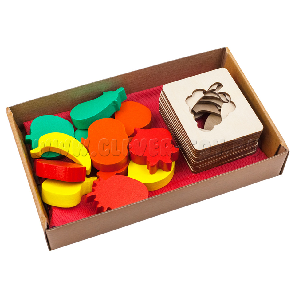 Сортер "Фрукты-овощи" (22,5*13,5 см, 12 рамок, 12 фигурок, мешочек, АТ)
