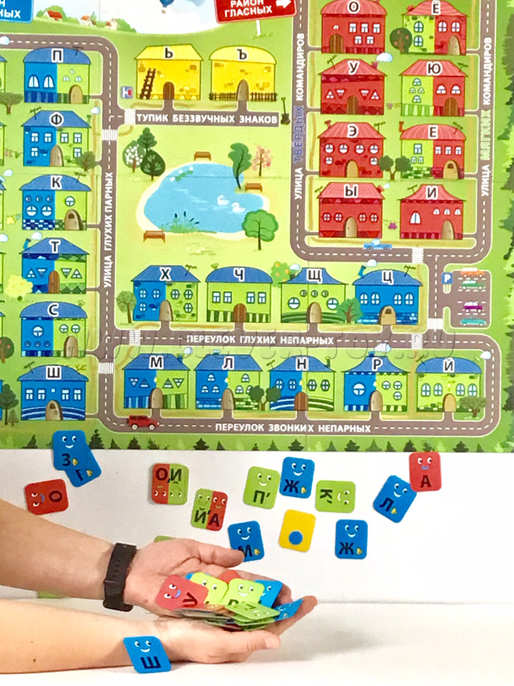 Размер доски: 69 см * 80 см. В комплекте 72 магнитных карточки размером 5 см * 4 см.