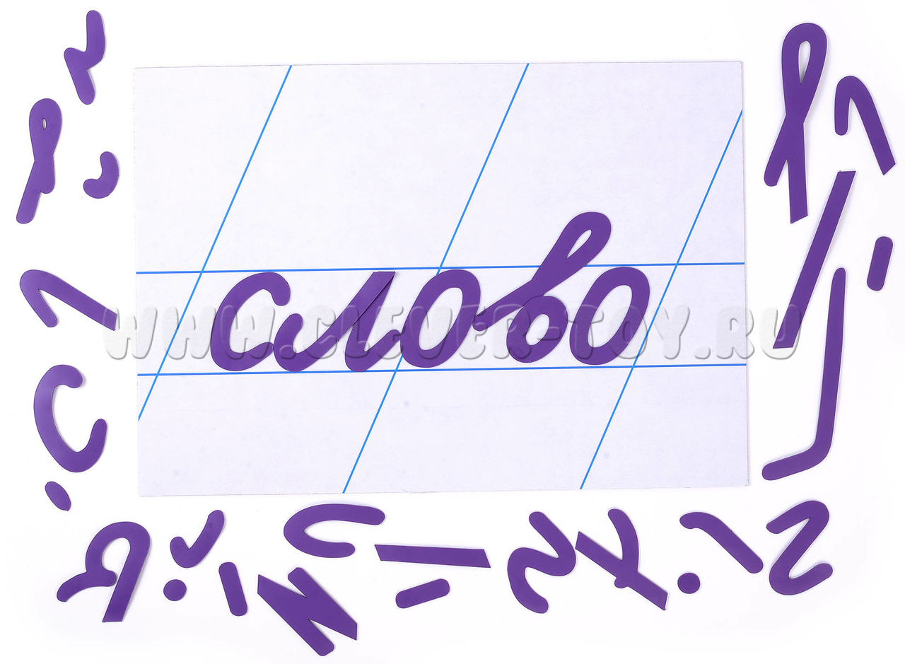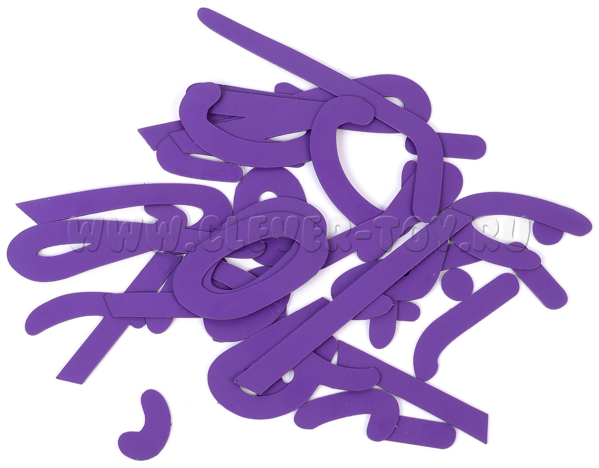 В наборе: 70 магнитных карточек - элементов букв.