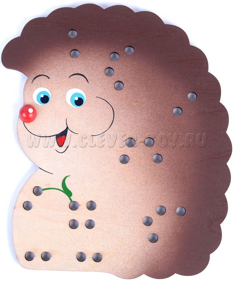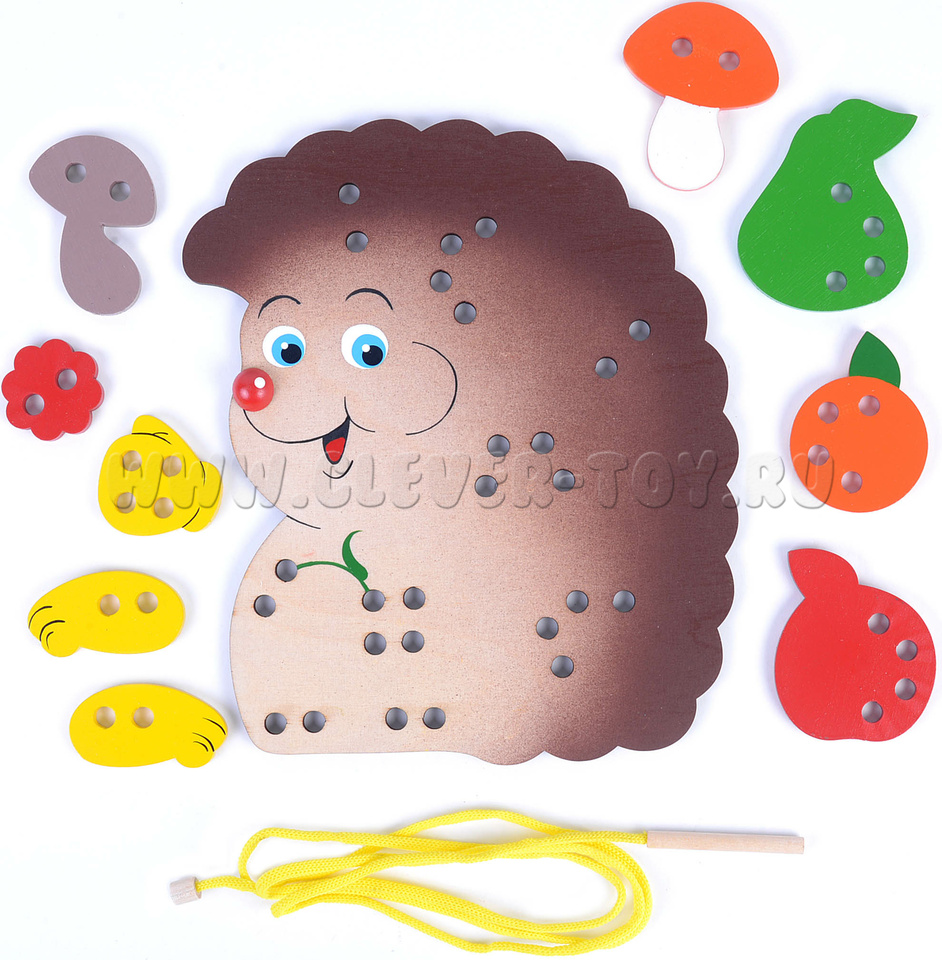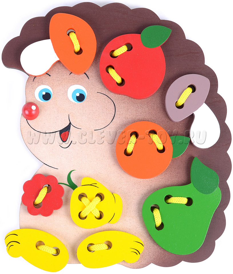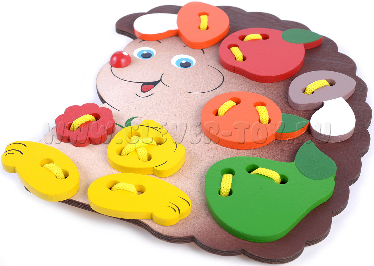 Шнуровка «Ёжик» выполнена из экологически чистого материала – берёзы, абсолютно безопасна для детских пальчиков, все игровые элементы хорошо отшлифованы, покрыты яркими безопасными красками на водной основе.