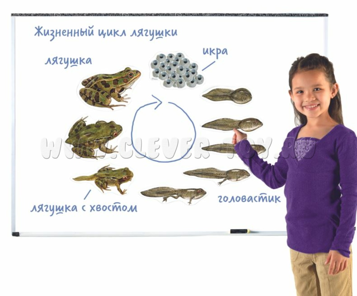 - В состав набора входят 9 магнитных детализированных иллюстраций, которые показывают различные этапы жизненного цикла лягушки.
