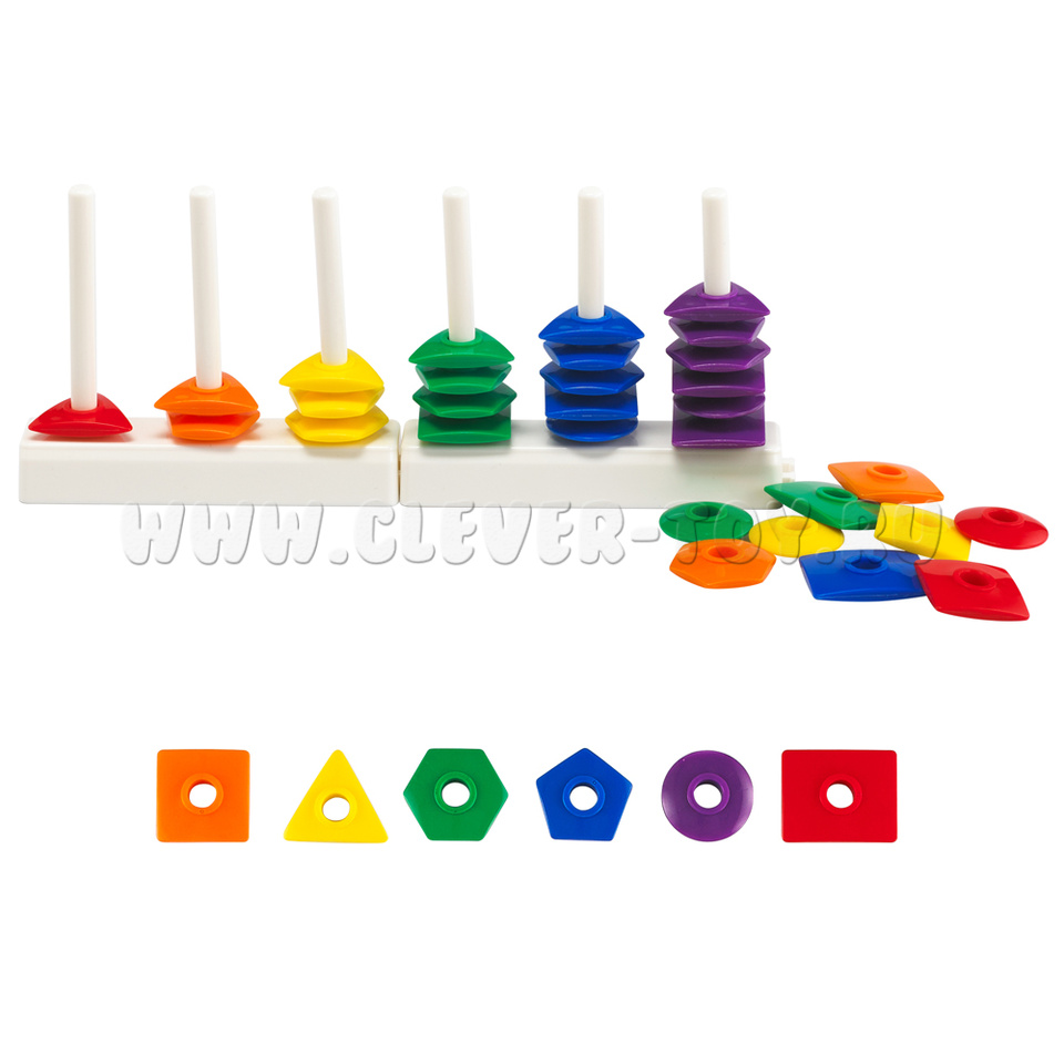 - 2 соединяющиеся между собой подставки, имеющие по 3 стержня для нанизывания деталей;