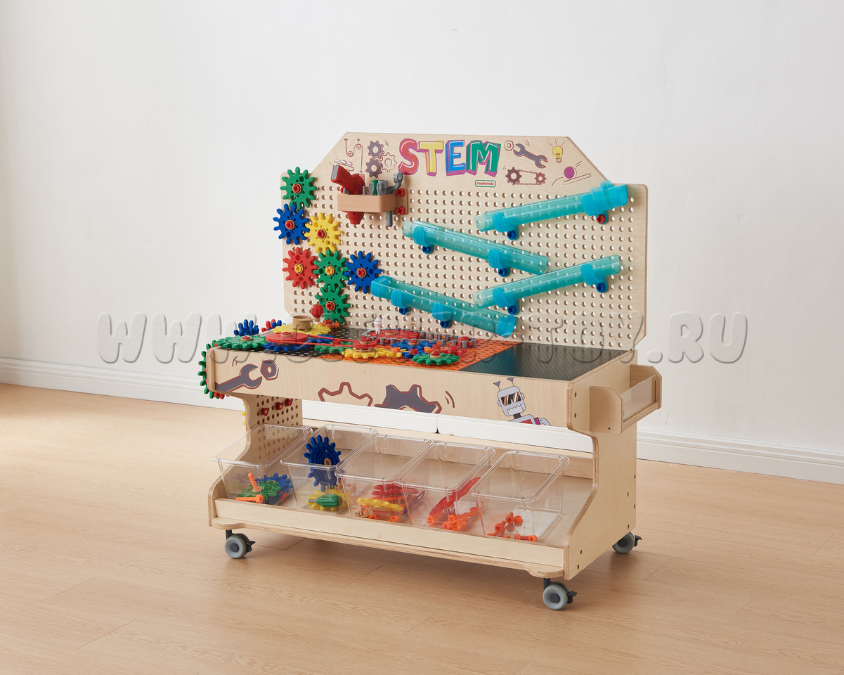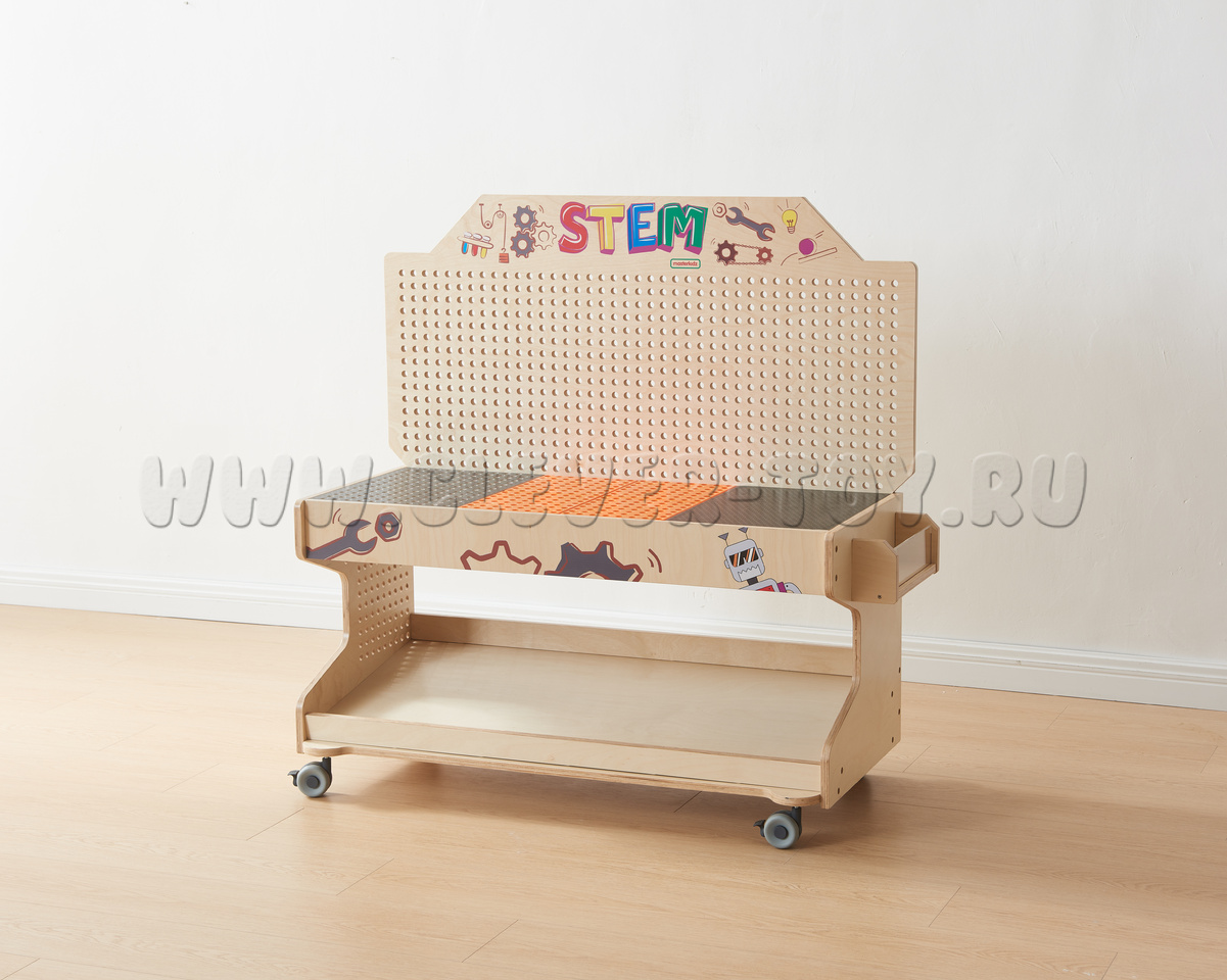 Мобильный STEM-стол - идеальное дополнение к любому дошкольному или начальному школьному классу. Подходит для развития мелкой моторики рук и зрительно-моторной координации, логического и творческого мышления, навыка конструирования и воображения, знакомства со STEM-обучением.
