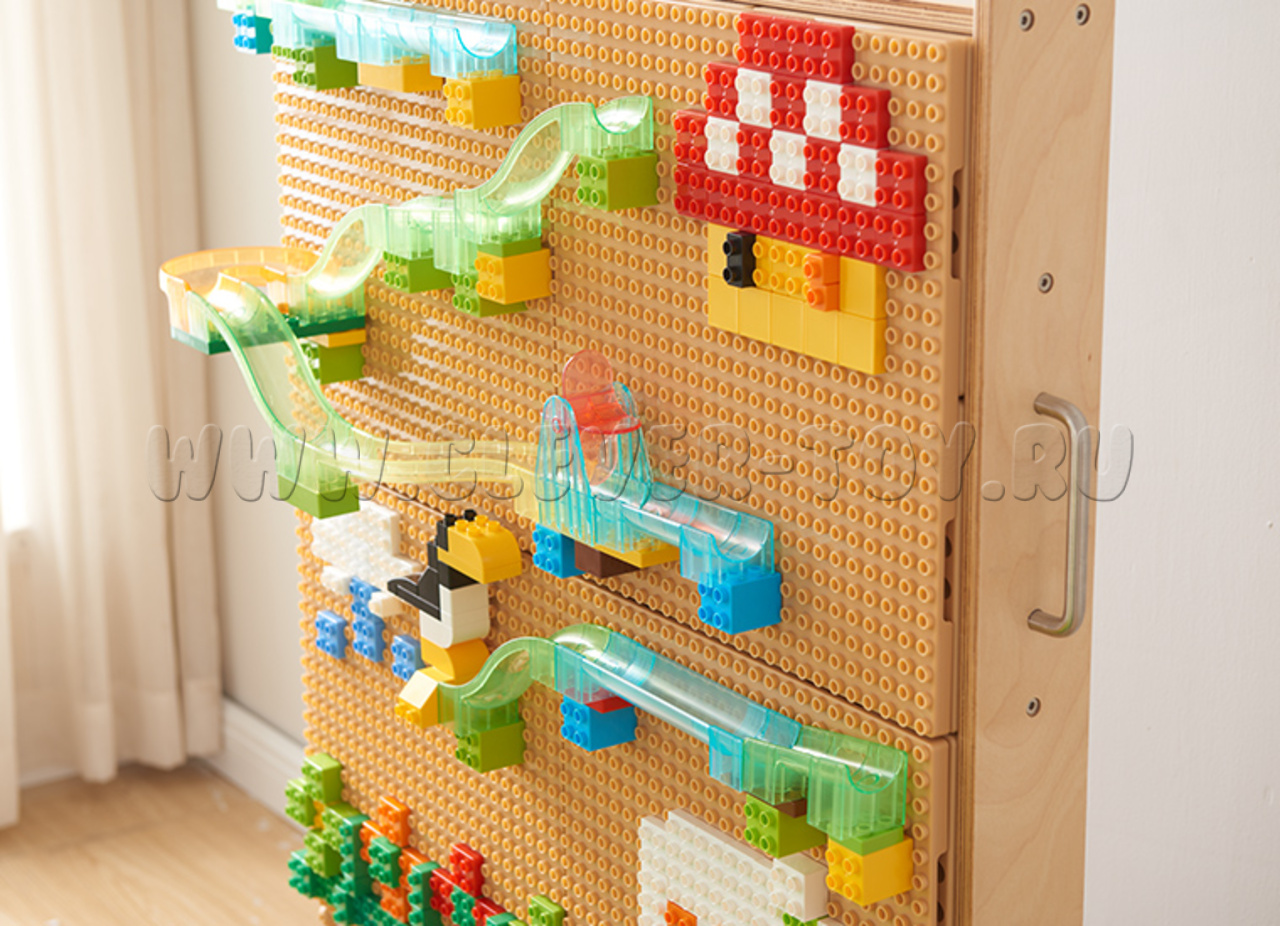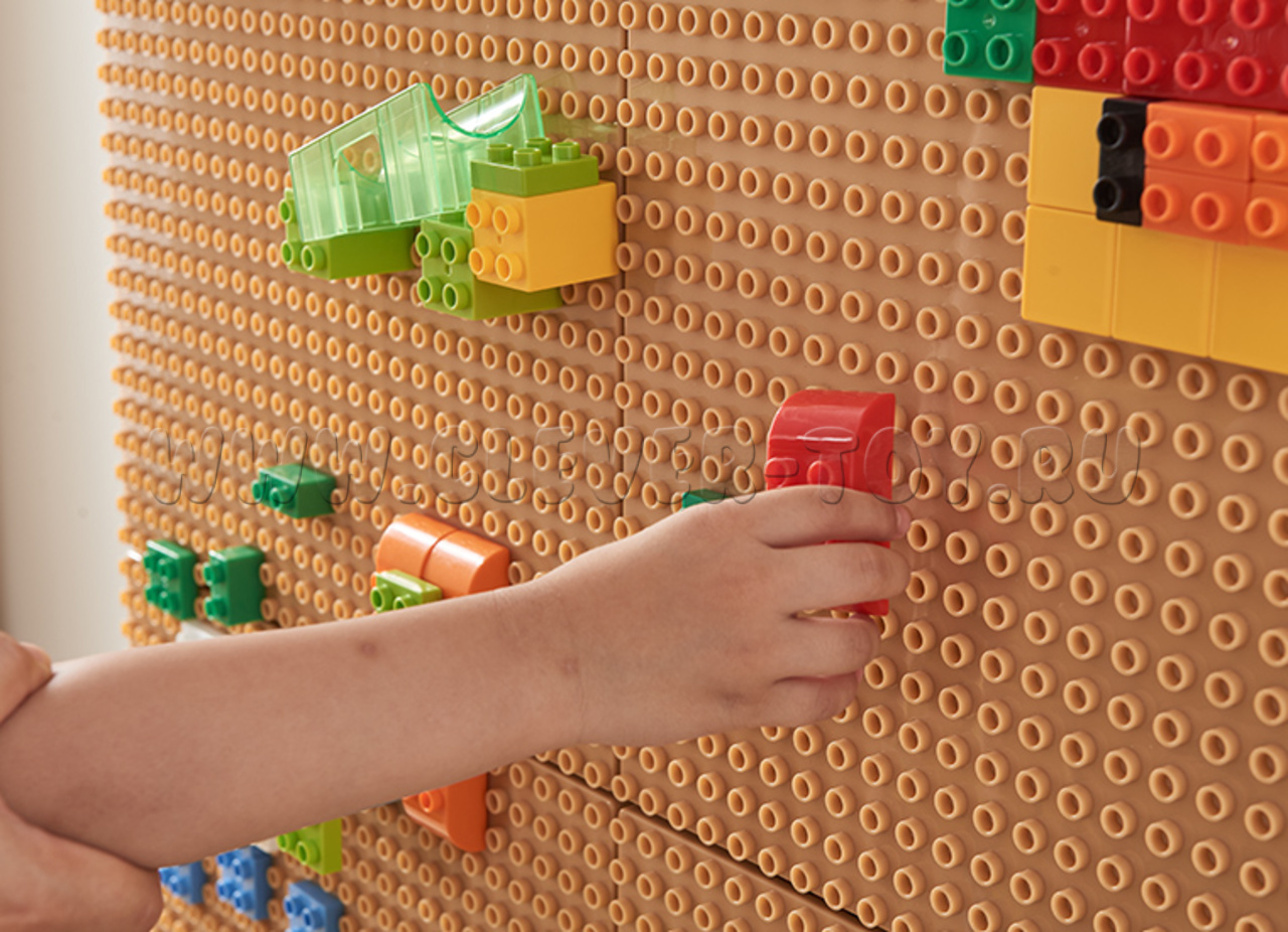 Блоки фиксируются на стене и столе при помощи пластикового основания Masterkidz (арт. ME28976, ME25302).